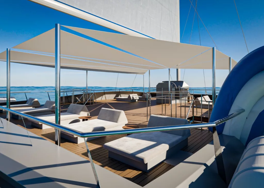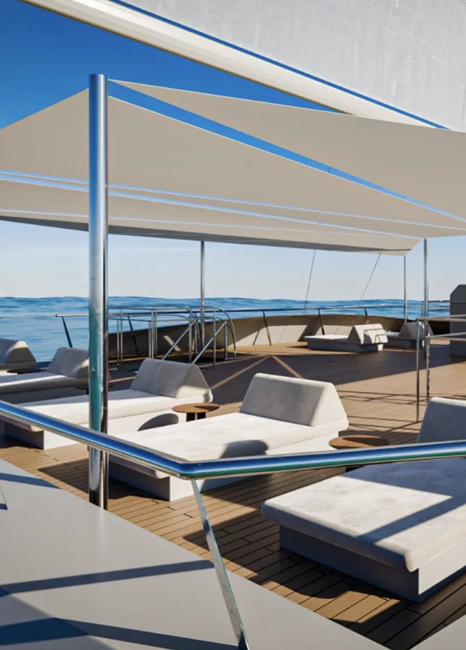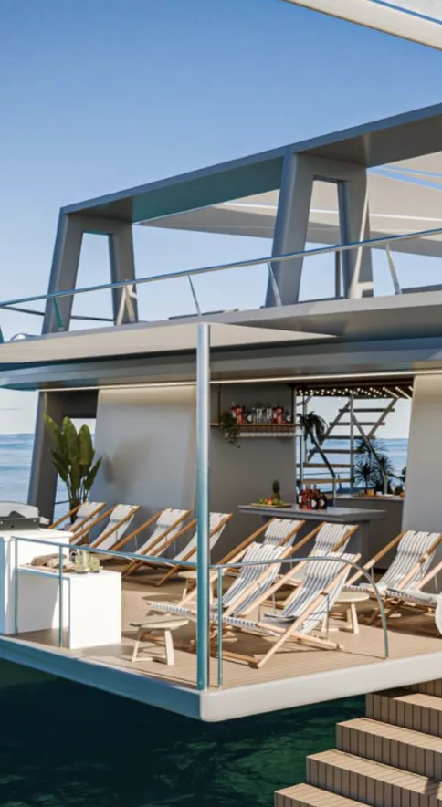 Direct access to the sea · Bow nets and seating benches · Standard catering service · Spacious open area · Easy movement between sea and deck · Multiple swimming access points